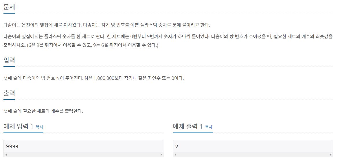 우선 문제를 이해해보면 숫자 세트 하나에는 0, 1, 2, 3, 4, 5, 6, 7, 8, 9가 들어있고