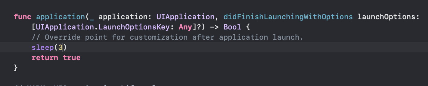 아래의 코드는 시작 화면 노출 시간을 3초간 지연시킨 코드이다.